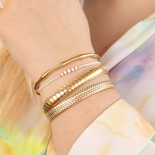 Lorsque vous combinez ces bracelets en acier inox avec des bracelets colorés faits maison, les bracelets en acier inox se démarquent encore plus ! Enfilez par exemple des rocailles Preciosa blanches et des perles d’eau douce sur un fil élastique pour un bracelet minimaliste ou utilisez du ruban avec fleurs que vous fermez avec une perle stoppeur. Vous pouvez aussi créer un bracelet avec du fil métallique en alternant des pierres naturelles avec des perles en métal DQ. Pour finir, n’oubliez pas d’utiliser une chaîne d’extension !