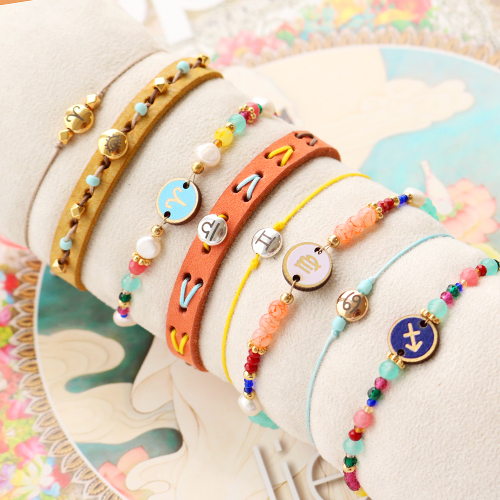 Vous pouvez confectionner ces bijoux cool avec des perles zodiaque et du fil macramé :