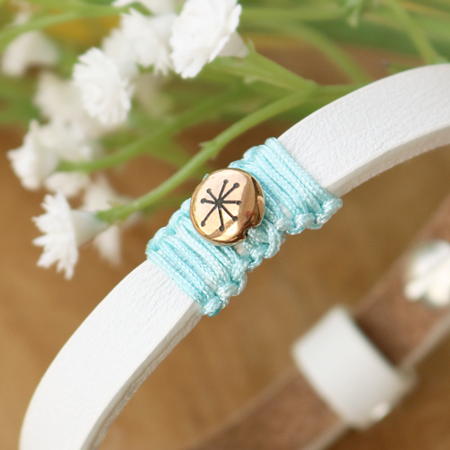 Avec les toutes nouvelles perles zodiaque en métal DQ, vous allez pouvoir confectionner une multitude de bijoux différents. Par exemple, vous pouvez décorer un bracelet Cuoio avec différentes couleurs de fil macramé et, au milieu, la perle zodiaque en guise de pièce maîtresse. En faufilant le fil de différentes manières à travers les trous ou en l’enroulant autour du bracelet, vous créerez un effet fun et coloré. Vous pouvez également enfiler sur le fil d’autres petites rocailles ou perles en métal DQ. Vous pouvez bien entendu également combiner les perles en métal DQ avec des apprêts de boucles d’oreilles en métal DQ et des perles coquillage tube. Enfilez les perles sur un clou à tête plate pour créer une adorable breloque. Accrochez-la à l’œillet d’un apprêt de boucle d’oreille et vos boucles d’oreille sont prêtes !