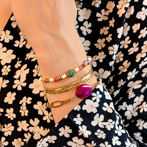 Les bijoux bohèmes font à nouveau fureur ce printemps ! Profitez de cette tendance et créez des colliers de différentes longueurs que vous pouvez superposer. Servez-vous du fil macramé et des pierres naturelles pour un véritable look bohème. Un bracelet en chaîne maille jaseron épaisse, à laquelle vous attachez diverses breloques, sera un vrai accroche-regard. De longues boucles d’oreilles pendantes et une lanière de téléphone avec de grosses perles ne doivent pas manquer à votre collection printemps !